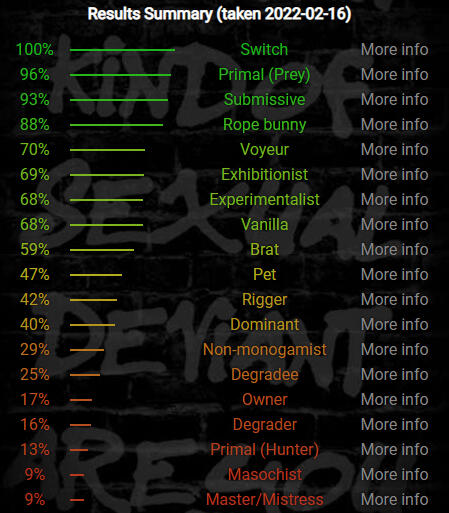 Likes: Dominance and assertiveness, gorgeous curves, roses, sweet red wine, anyone who can make me laugh.